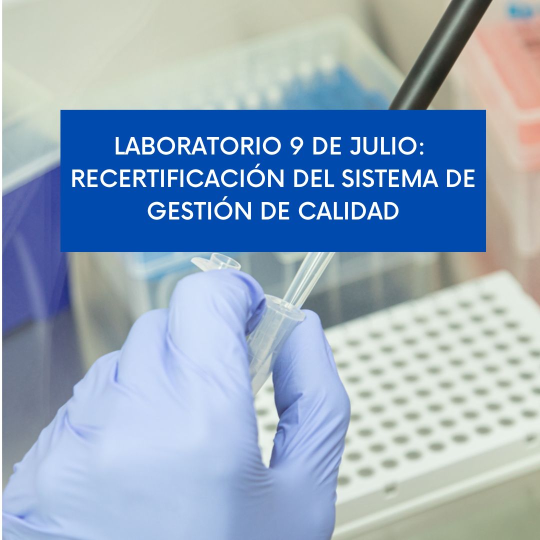 Desde el año 2012 Laboratorio 9 de Julio cuenta con la Certificación Internacional basada en la Norma IRAM-ISO 9001:2015. En abril del presente año ha superado satisfactoriamente la auditoria de recertificación realizada por el IRAM, la cual fue llevada a cabo por el auditor Dante Tollio, obteniendo de este modo la cuarta certificación consecutiva.
