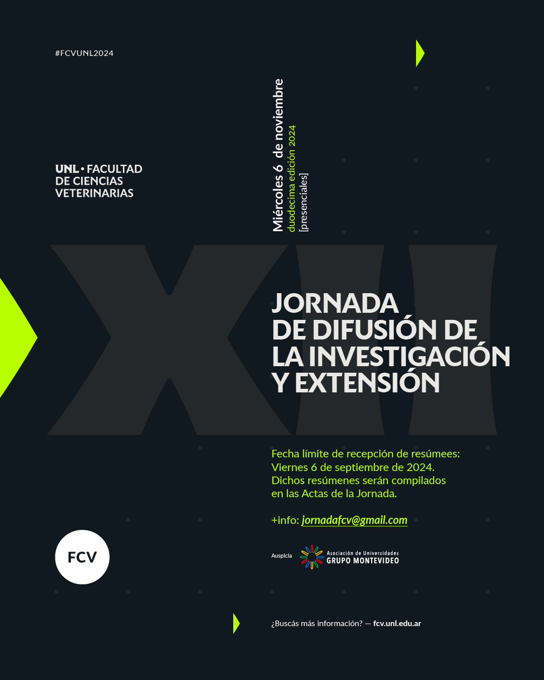 -Para ampliar información acerca de la presentación de los trabajos, confección de resúmenes y formas de pago, ingresar a: https://www.fcv.unl.edu.ar/investigacion/jornadas-2024/