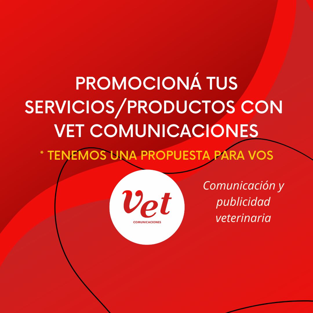 Vet Comunicaciones ofrece a profesionales y empresas del sector la posibilidad de promocionar sus servicios/productos (cursos, jornadas, especialidad, productos, etc.). Comunicate con nosotros y te armamos una propuesta. TAGS: Comunicación veterinaria. Publicidad veterinaria. Empresas veterinarias. Laboratorios veterinarios. Veterinarias. Veterinarios. Servicios veterinarios.