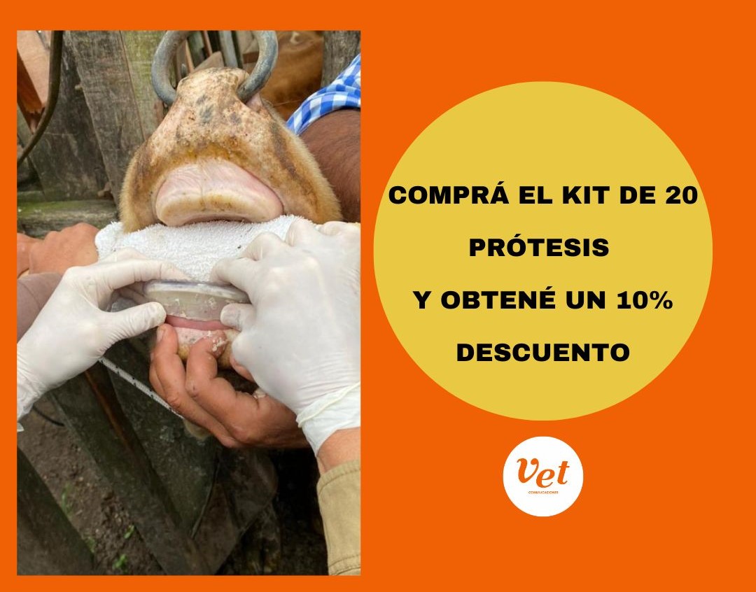 Las Prótesis Dentales para Bovinos Vet 17 están diseñadas para prevenir el desgaste prematuro de dientes en vacas en edad reproductiva y con buen desempeño. Durante el mes de noviembre tenemos una oferta exclusiva para vos. TAGS: Prótesis dentales para bovinos. Bovinos. Ganadería. Producción ganadera. Producción bovina. Productores agropecuarios. Cría bovina. Vacas. Rentabilidad ganadera. Desgaste dentario en vacas