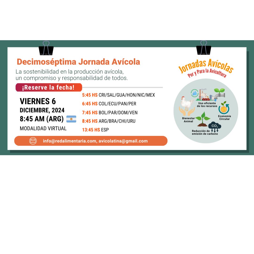 Bajo el lema “La sostenibilidad en la producción avícola, un compromiso y responsabilidad de todos. Por y para la Avicultura”, se realizará la Decimoséptima Jornada Avícola. TAGS: Jornada Avícola. Avicultura. Producción avícola. Producción de aves.