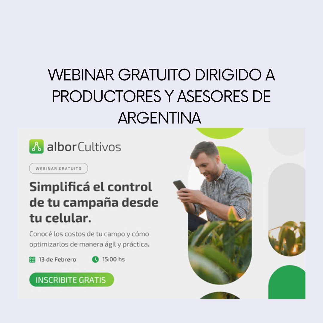 Albor invita a un webinar gratuito dirigido a productores y asesores de Argentina y Uruguay para conocer cómo registrar los costos en el campo y organizarlos de manera ágil y práctica. TAGS: Webinar gratuito. Agricultura. Productores agropecuarios. Asesores agropecuarios.