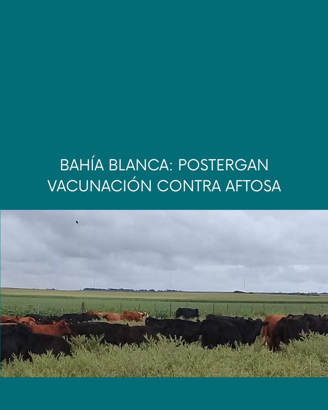 Debido al fuerte temporal que afectó a Bahía Blanca, el Senasa junto con la Secretaría de Agricultura, Ganadería y Pesca de la Nación resolvió postergar 30 días, hasta el 17 de abril de 2025, el inicio de la primera campaña anual de vacunación contra la fiebre aftosa en esa ciudad del suroeste de la provincia de Buenos Aires.