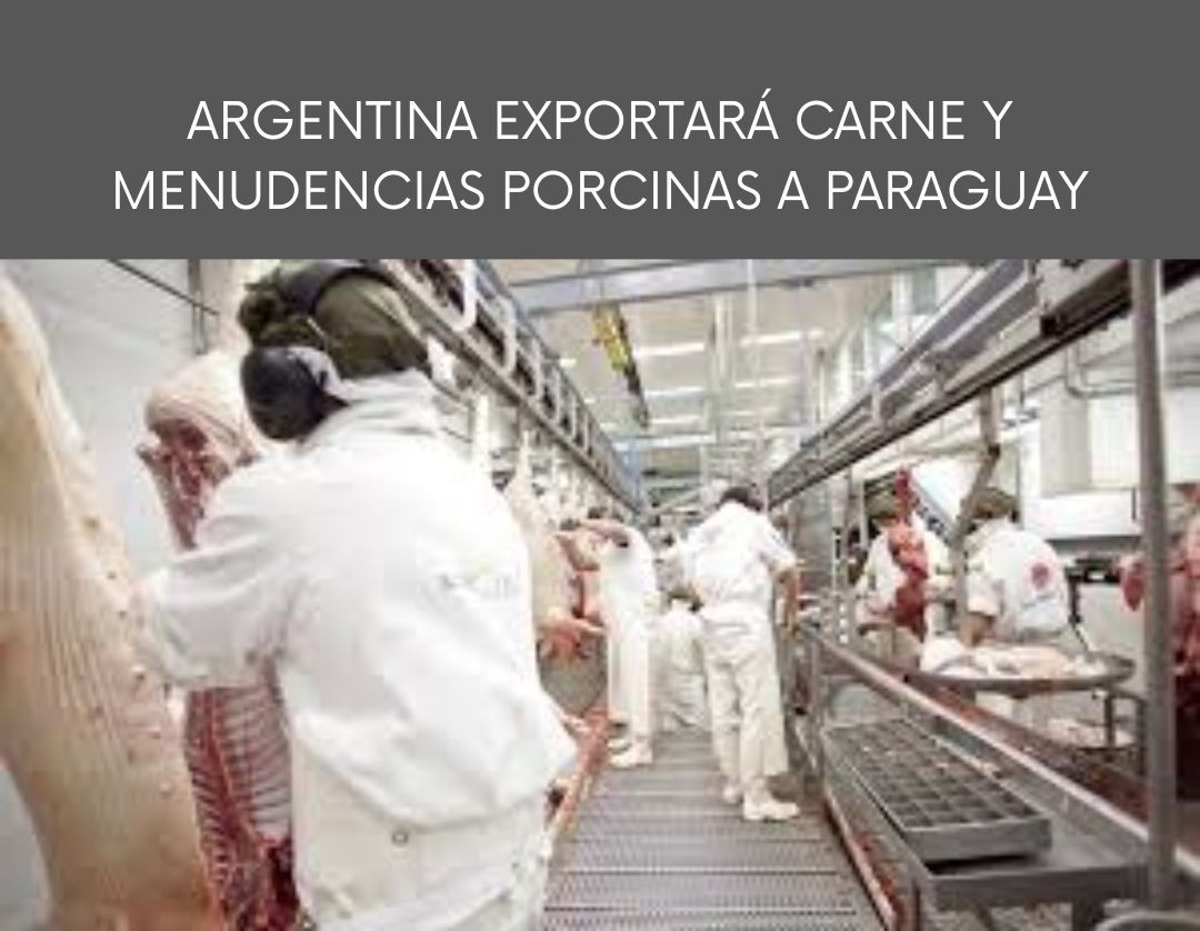 Argentina podrá exportar carne y menudencias porcinas a Paraguay, luego de que el Servicio Nacional de Calidad y Salud Animal (Senacsa) de ese país aceptara oficialmente el modelo de certificado sanitario propuesto por el Senasa para amparar los envíos de esos productos.