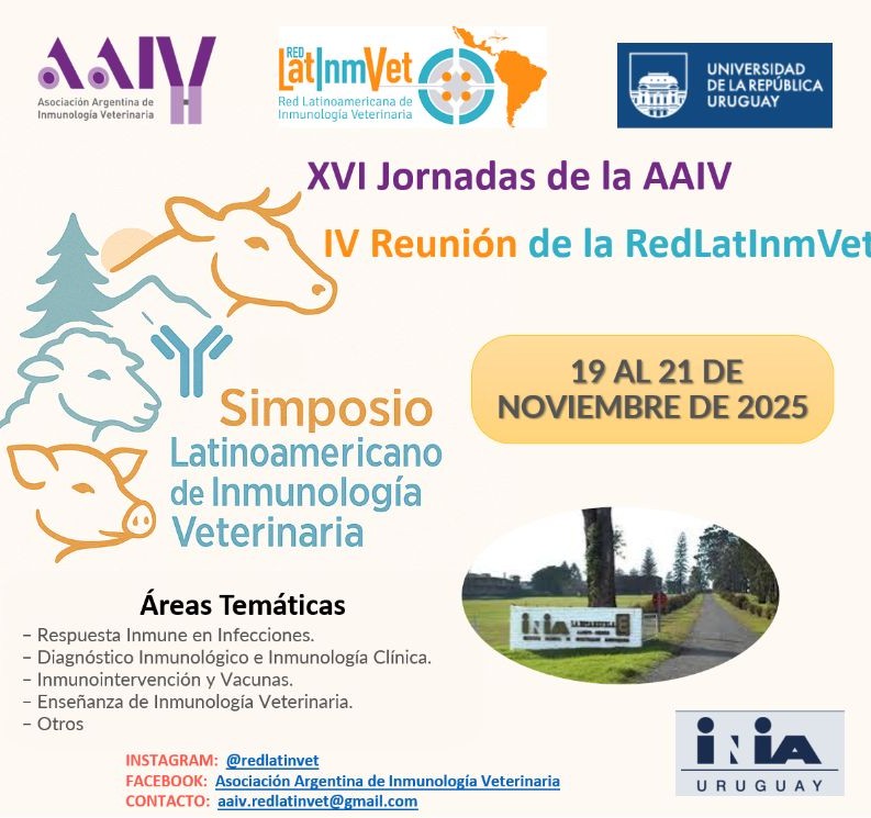 XVI Jornadas de la Asociación Argentina de Inmunología Veterinaria (AAIV) y IV Reunión de la Red Latinoamericana de Inmunología Veterinaria (RedLatinvet). TAGS: Inmunología veterinaria. Medicina veterinaria. Simposio.