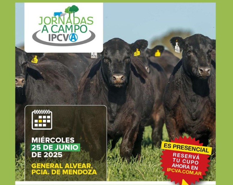 Bajo el slogan “Herramientas claves para una ganadería sustentable”, el Instituto de Promoción de la Carne Vacuna Argentina (IPCVA) realizará una nueva Jornada a Campo en General Alvear, Mendoza, el próximo miércoles 25 de junio de 2025. TAGS: Jornada a campo. IPCVA. Carne bovina. Ganadería