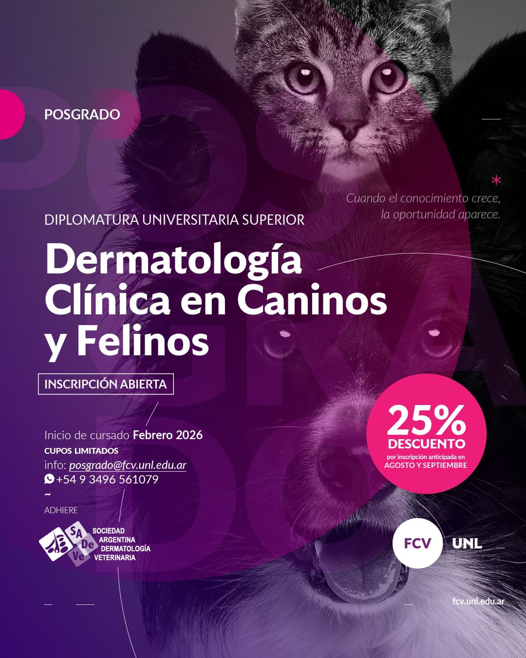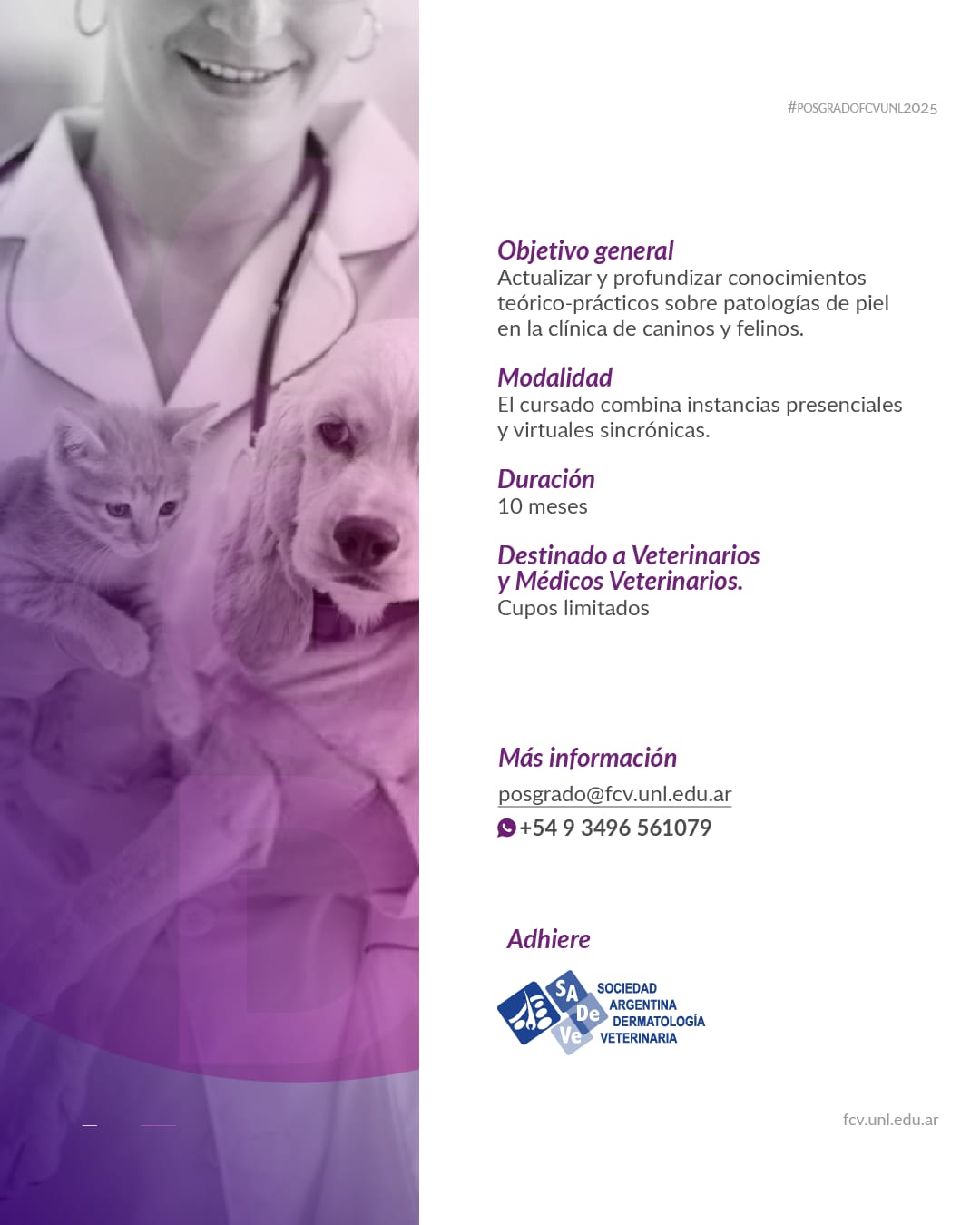 Para más información y consultas: posgrado@fcv.unl.edu.ar / WhatsApp: 3496 – 561079.