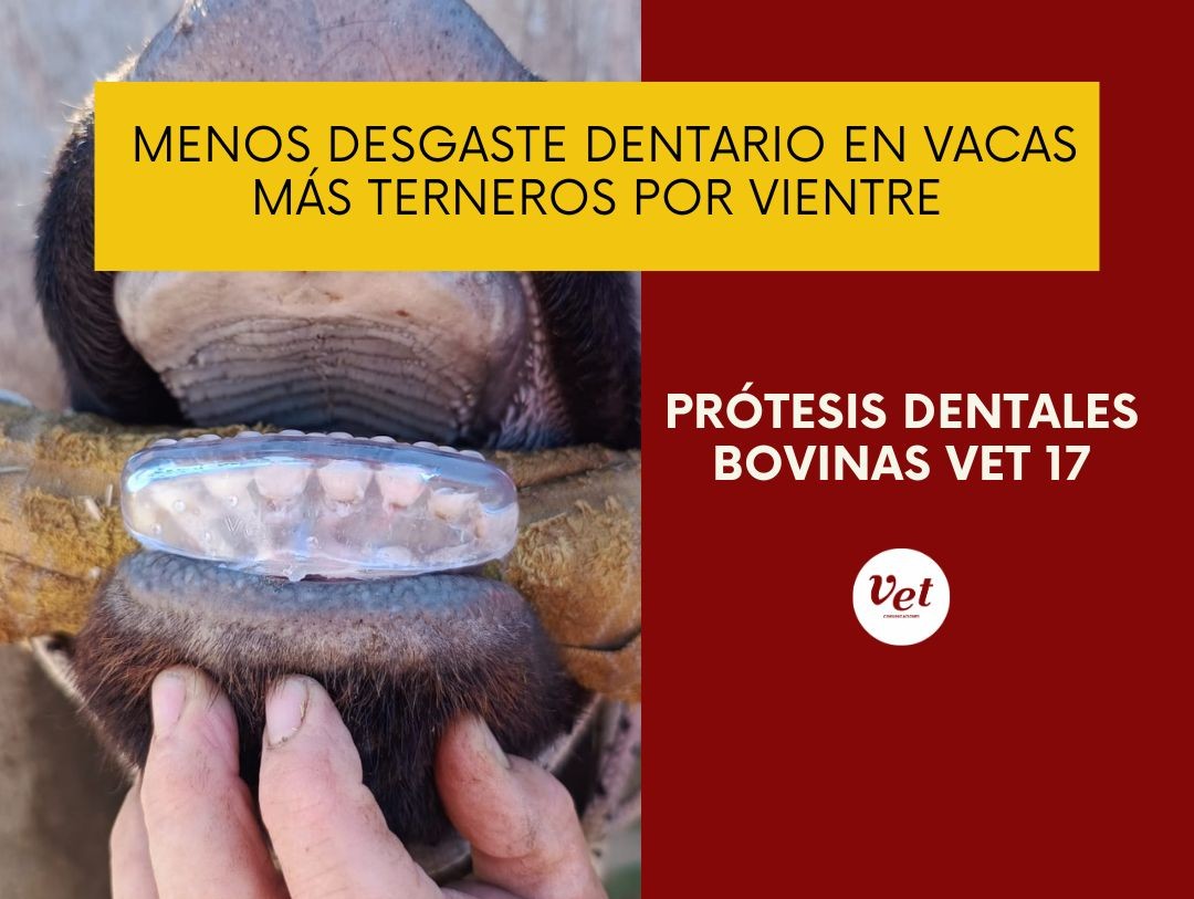 Con las Prótesis Dentales para Bovinos Vet 17 es posible aumentar la cantidad de terneros por vientre y prolongar la vida reproductiva de las vacas, optimizando al máximo los recursos disponibles. TAGS: Producción ganadera. Ganadería eficiente. Prótesis dentales bovinas Ve17. Ganadería sustentable. Eficiencia productiva