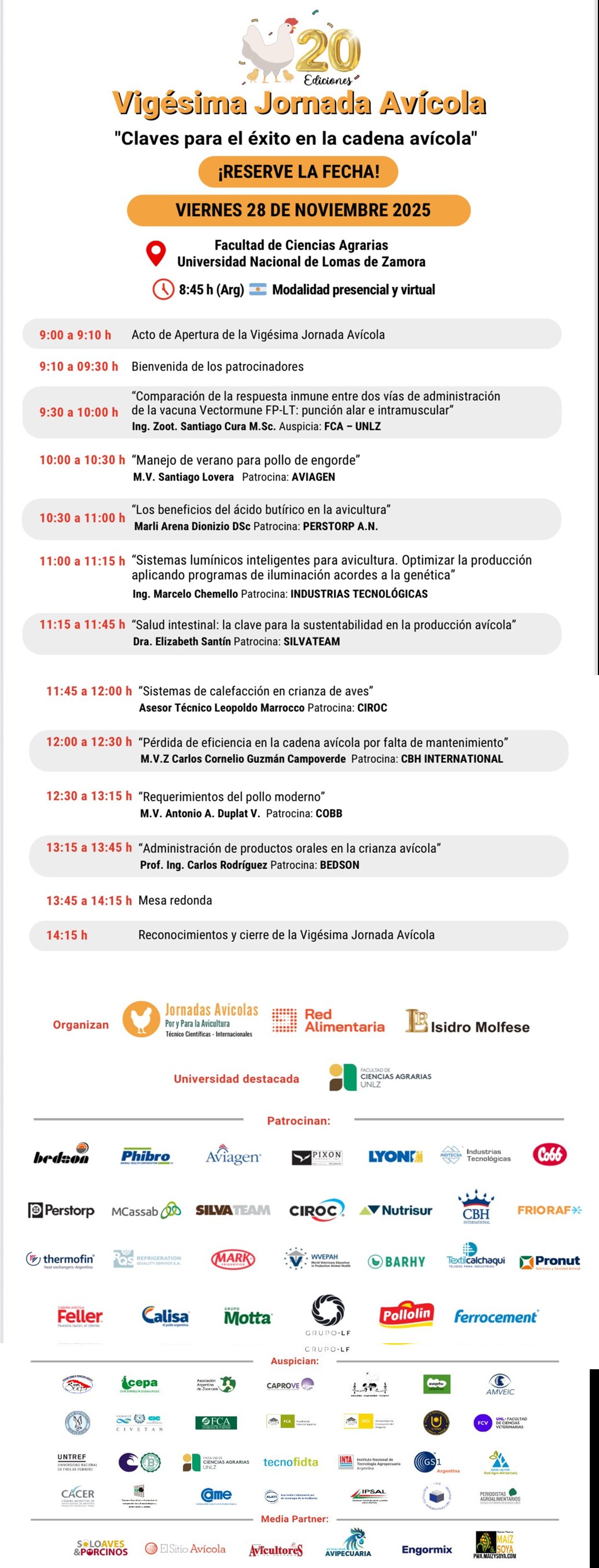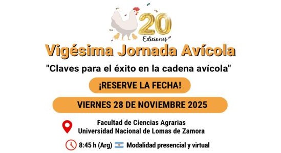Se viene la vigésima Jornada Avícola “Por y para la Avicultura”, organizada por Red Alimentaria & Dr. Isidro Molfese. Fecha: 28 de noviembre de 2025. TAGS: Jornada. Avicultura. Cadena avícola. Sector avícola. Industria avícola. Producción avícola
