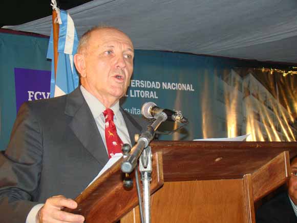 En representación del rector de la UNL, Abog. Albor Cantar, estuvo presente el Secretario Académico de la UNL, Arq. Carlos Sastre. En su discurso, remarcó que la Facultad de Ciencias Veterinarias “tiene la singularidad de estar construyéndose, ampliándose y modernizándose permanentemente. La FCV se engalana con su pertenencia a la apasionante y trascendente historia de esta pujante ciudad de Esperanza”, dijo.