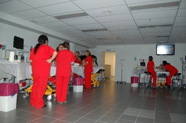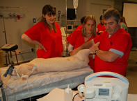 En las clases presenciales se destina la mayor parte del tiempo a realizar prácticas. Las mismas se llevan a cabo con animales normales, pacientes con patologías que corresponden a cada módulo y en algunos casos simuladores. La relación es de 2 a 3 alumnos por ecógrafo para que cada alumno pueda operar los equipos el tiempo suficiente que requiere la práctica.
