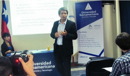 El Director Carlos Barrera, de los Centros de Atención Veterinaria de la Universidad Iberoamericana de Ciencias y Tecnología presentó un estudio de casos sobre tenencia responsable realizado entre el 1 de octubre y el 31 de diciembre del 2012 en los centros de atención de mascotas ubicados en San Joaquín, Cerro Navia, Buin y La Pintana.