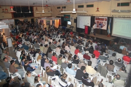 Foto 1: Hugo Traverso, decano del Instituto de Ciencias Básicas de la UNVM, habla en la presentación de TodoCerdos 2013.