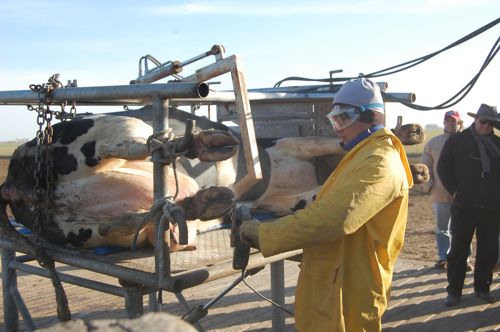 El ingeniero Enrique Piatti diseñó un potro mecánico en el que se logra acostar a la vaca, a los efectos de tratar cómodamente las afecciones podales. El experto Rodolo Acerbi calificó como muy adecuado el equipamiento para trabajar en sintonía con el concepto de bienestar animal.